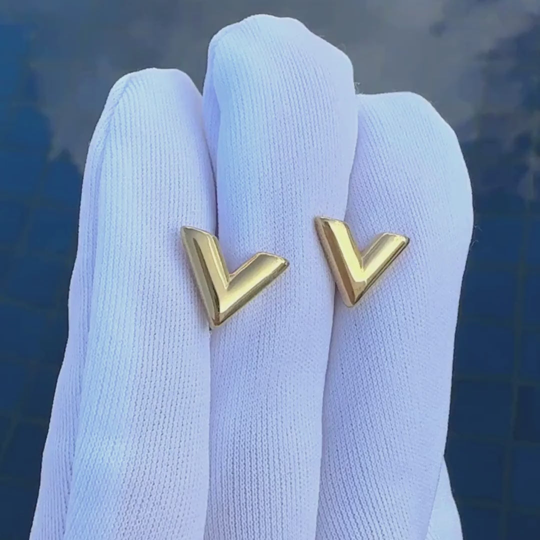 "V" Earrings, 18K Gold Plated Steel (87369)