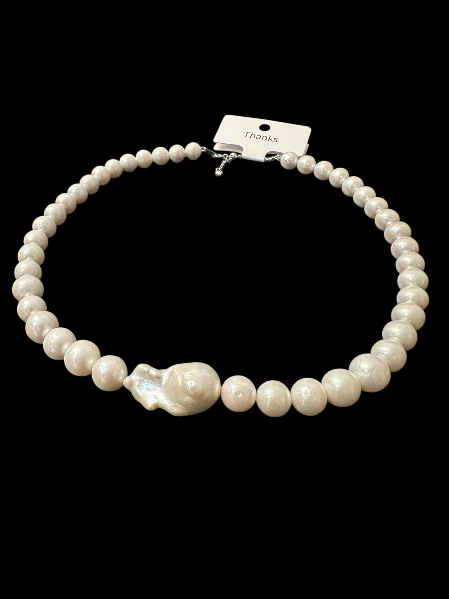 a Elegant Pure Silver Freshwater Pearl Necklace Skip to content